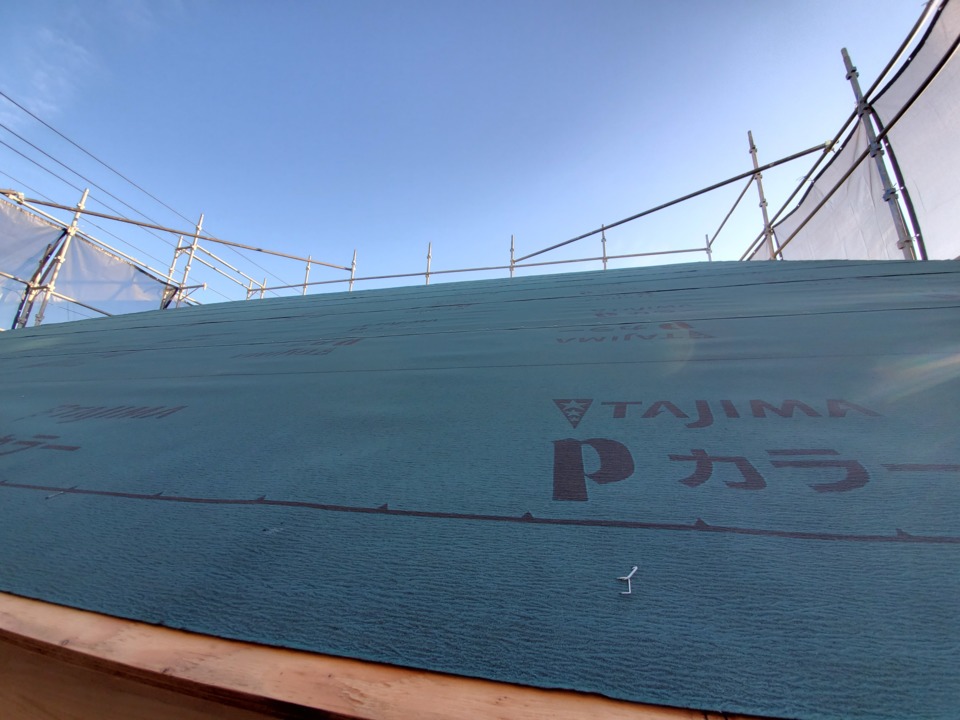 ルーフィングとは屋根の下地材(構造用ベニヤ)を施工した上に張り広げる防水シートのようなものです。