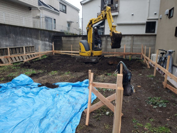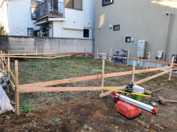 この遣り方とは、基礎工事に重要な情報が示されている囲いの様なものです。