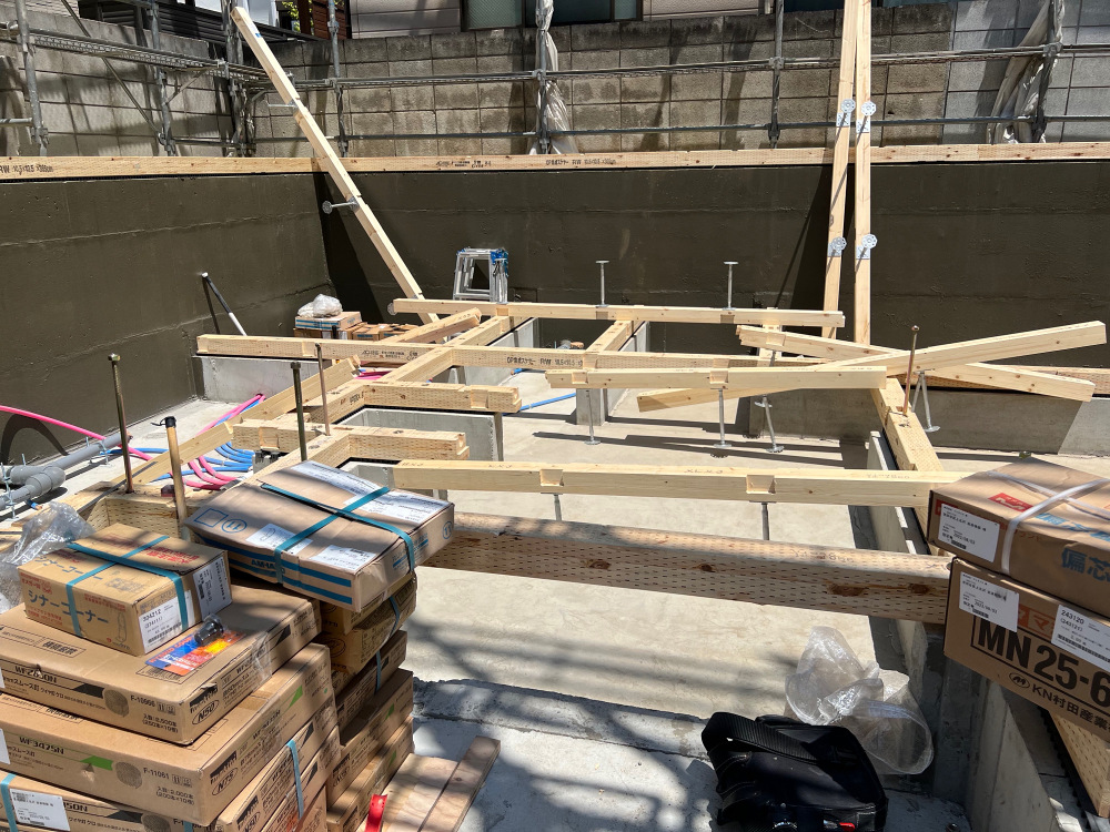 土台の施工中になります。