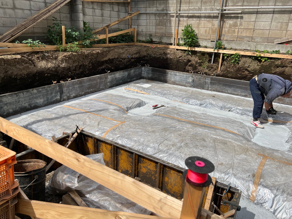 捨てコンクリートを打設しました。