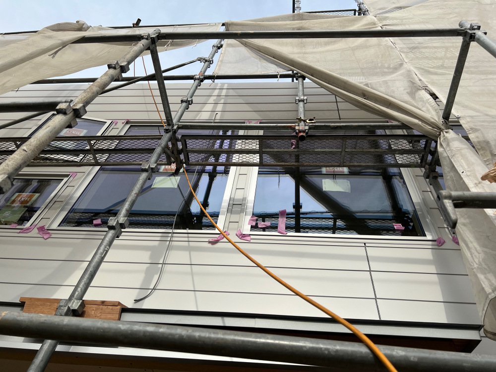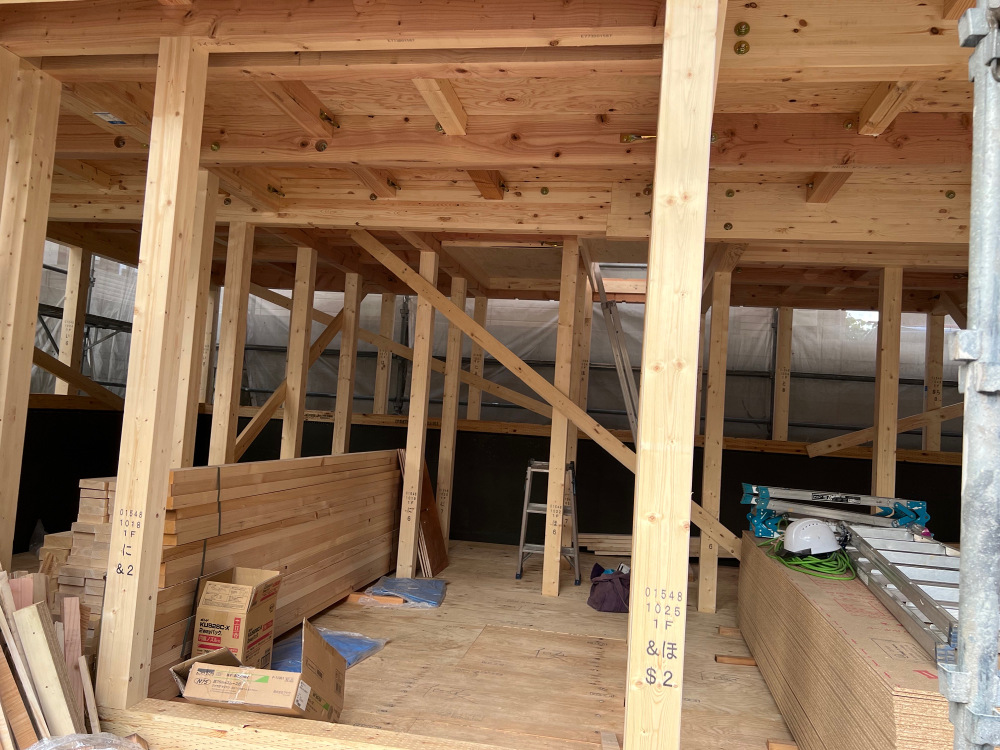 先行足場を施工し、木工事へと進みます。
