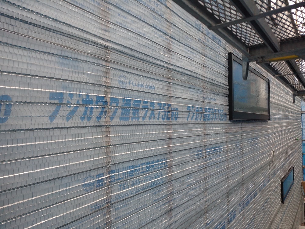 外壁塗装の下地になるラス網施工まで完了しました。この後下塗り→仕上げ塗装となります。