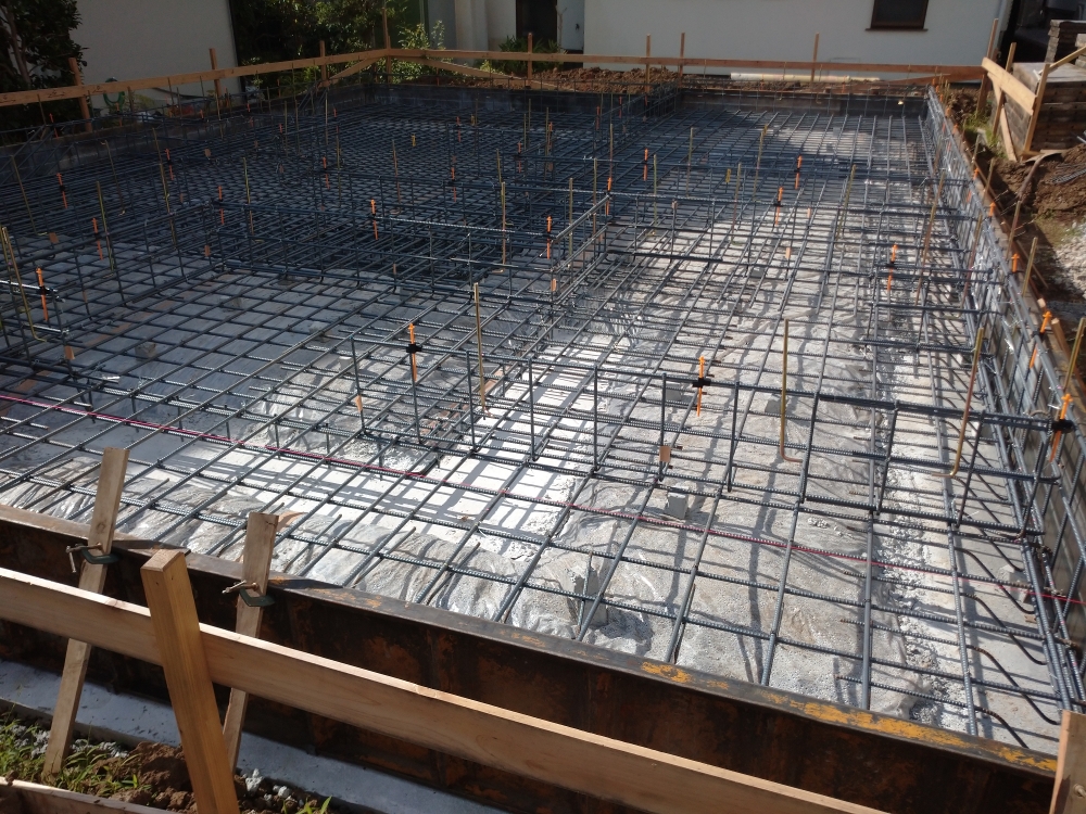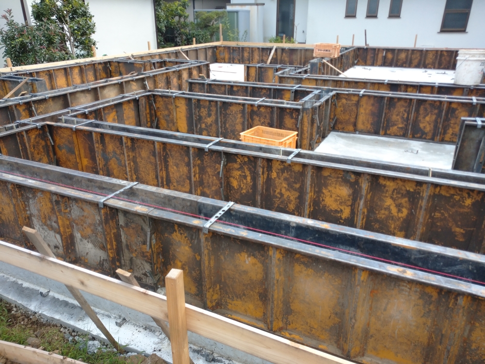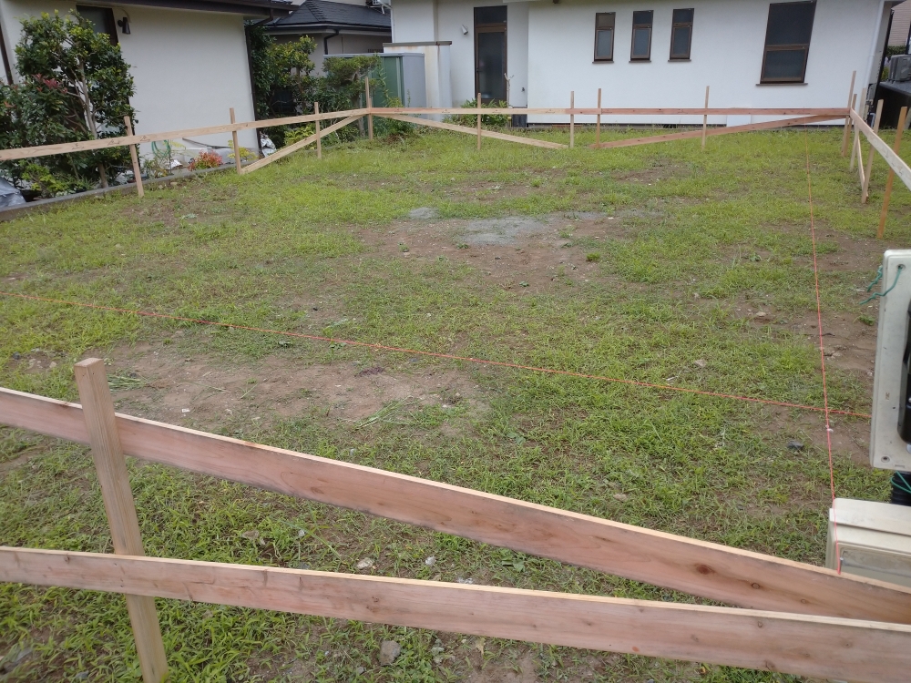 ここに墨を出していき、基礎の枠を組んでいきます。