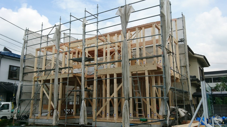 基礎天端のレベルチェックをおこない、大工工事へと移行いたします。
