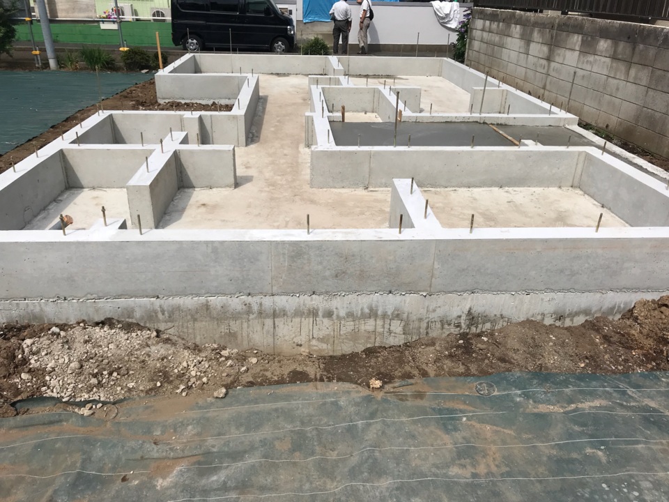 基礎工事にて、立上り部分の生コン打設が完了しました。