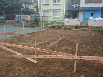 遣り方作業が完了しました。現場着手の1番最初の作業です。
