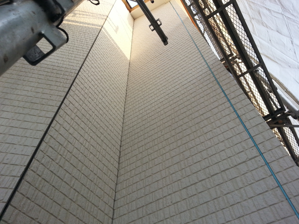 この後、サイディング板のジョイント部分等にコーキングをする作業に移行します。