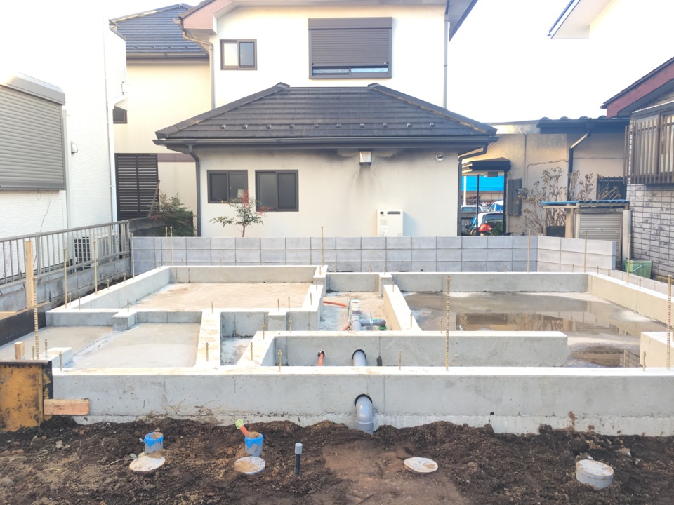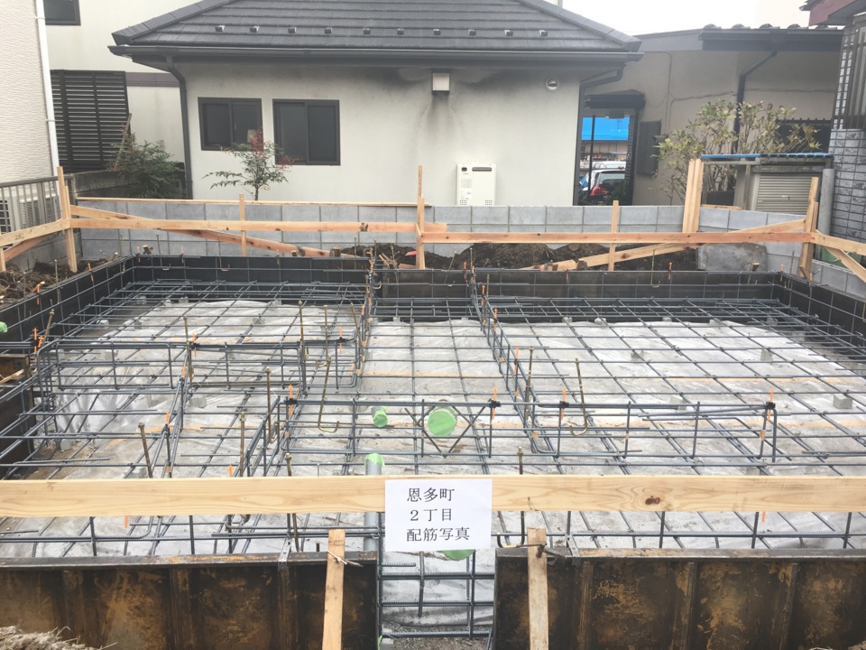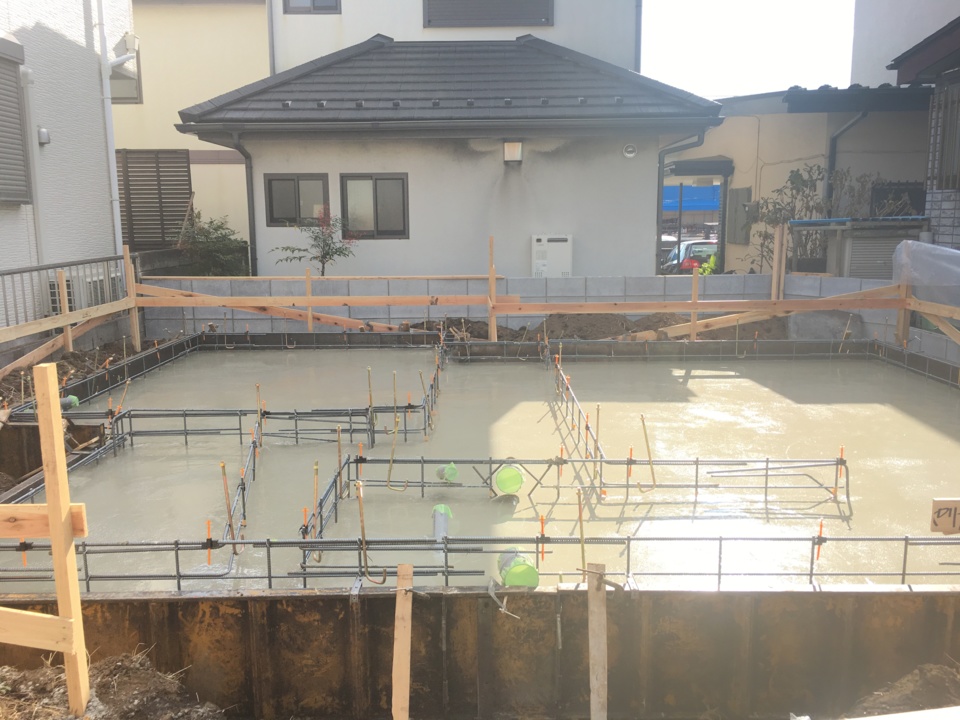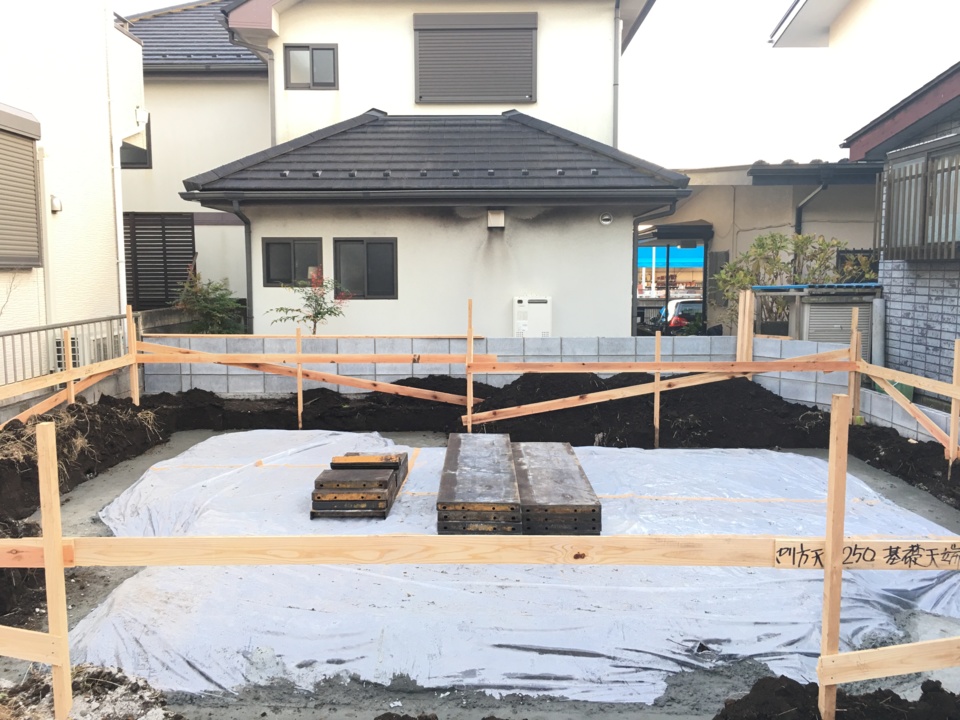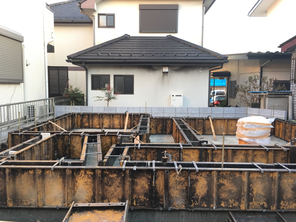 この遣り方を基準として、基礎の位置、高さ、基礎幅を決定し、施工していきます。
