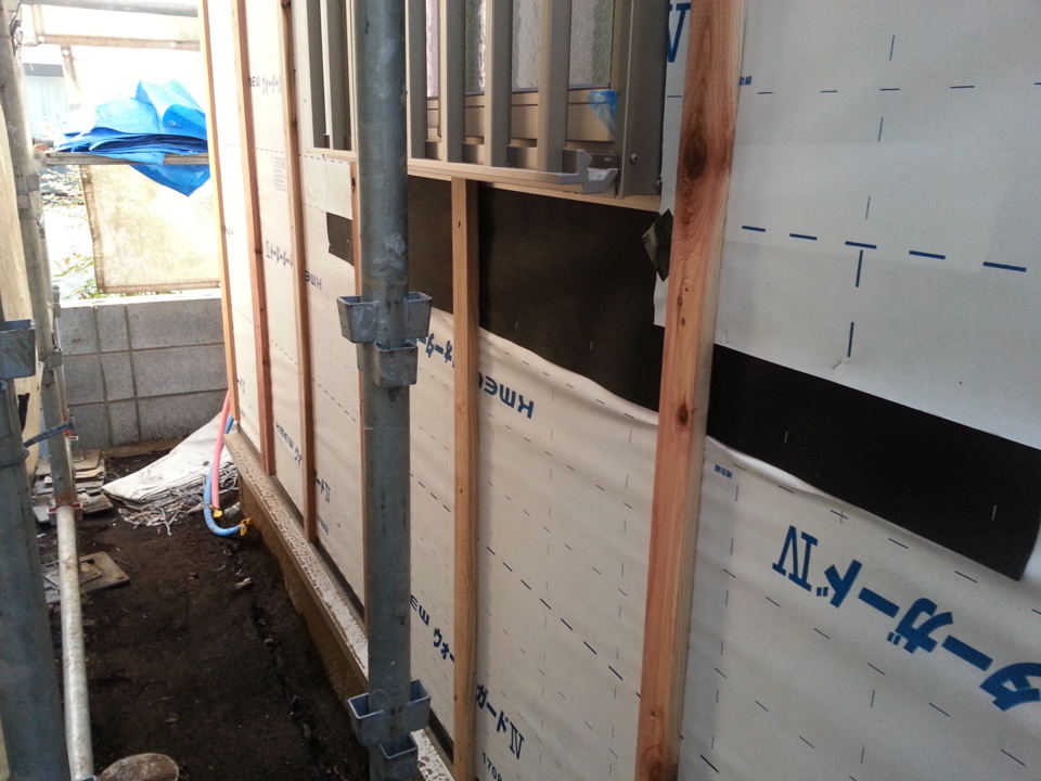 万が一、外壁(サイディング)から雨水が進入した場合でも躯体に影響がないように施行するものです。