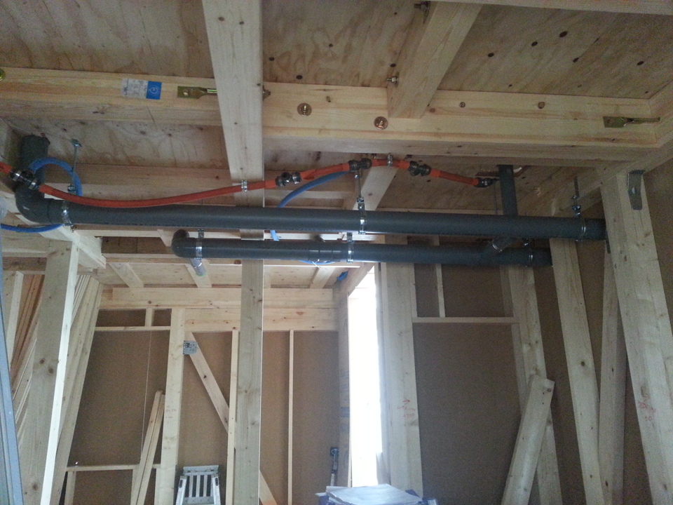 2階にユニットバス、洗面化粧台、トイレ、キッチンと水廻りが集中していますので、配管のルートを確保して外に抜く作業がとても大変です。