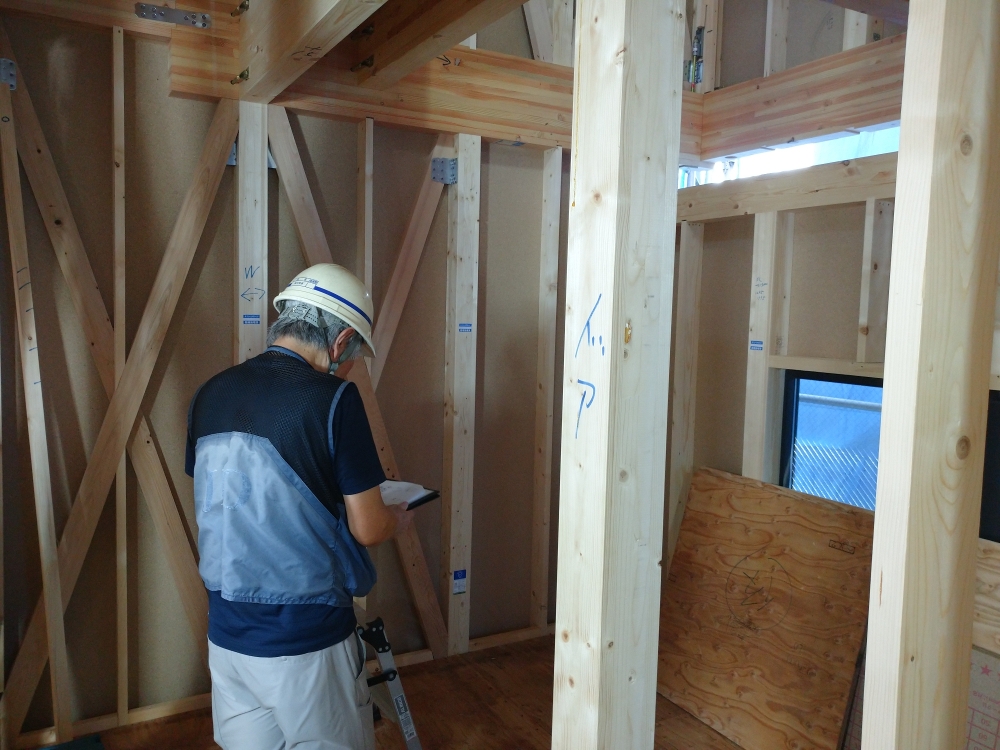 金物、耐力面材がしっかり施工されているかチェックを受けます。