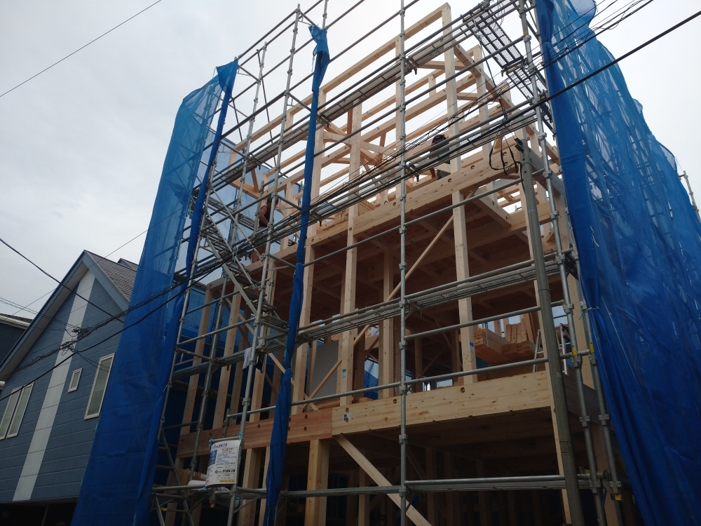 先行足場を施工し、木工事へと進みます。
