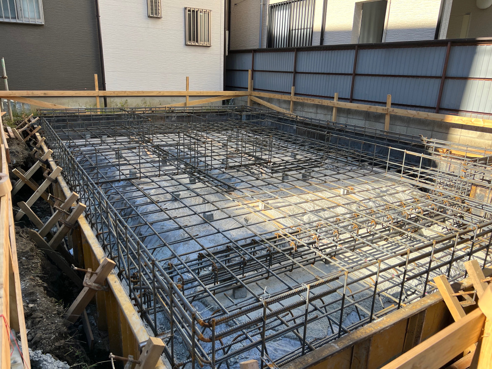 鉄筋の太さから始まり、配筋ピッチ、配筋長さ等が基礎伏図に記載されており、その通りに施工してもらい配筋検査を受ける準備となります。