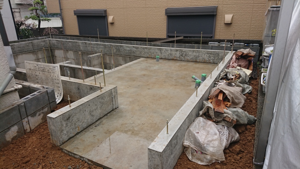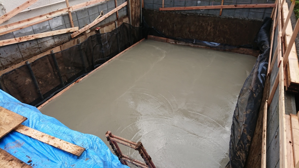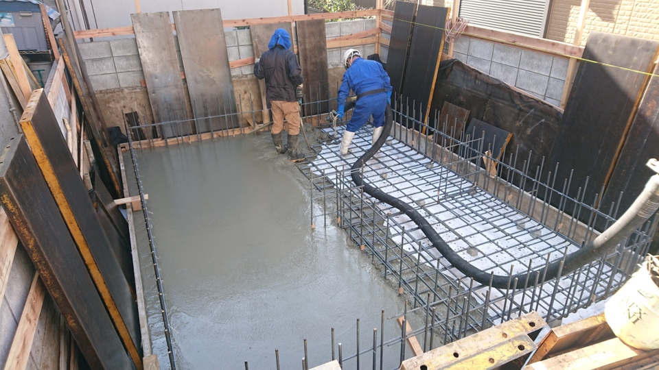 基礎工事:下部の耐圧盤の生コンを打設しました。