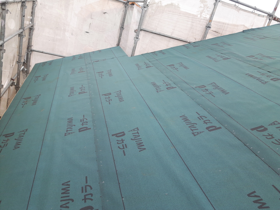 アスファルトルーフィングの施工をおこないました。