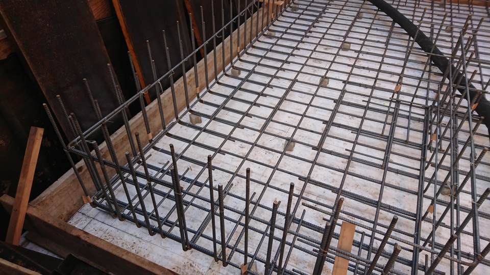 下段部分の立ち上がりは配筋が完成しました。