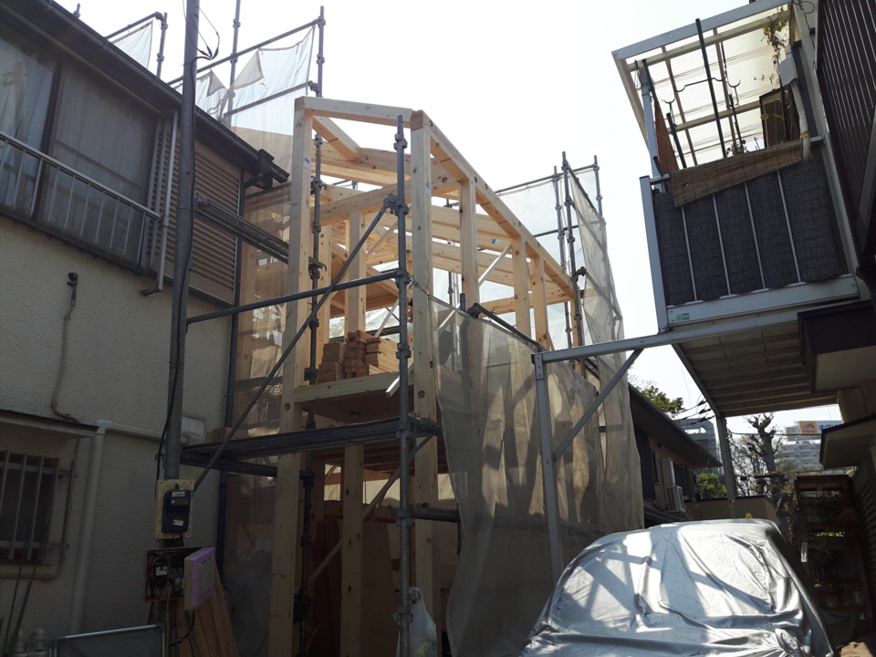 この足場を活用し、上棟工事へと移行していきます。