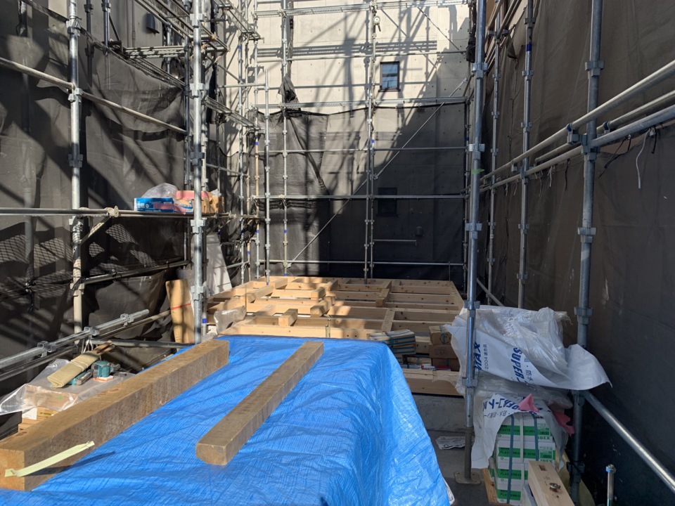 この後、コンクリートを乾燥させるために養生日を確保し、枠をばらす作業に移ります。