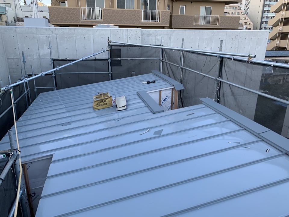 次に屋根用のルーフィングを施工し、屋根材のコロニアル施工へと進みます。