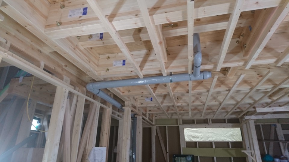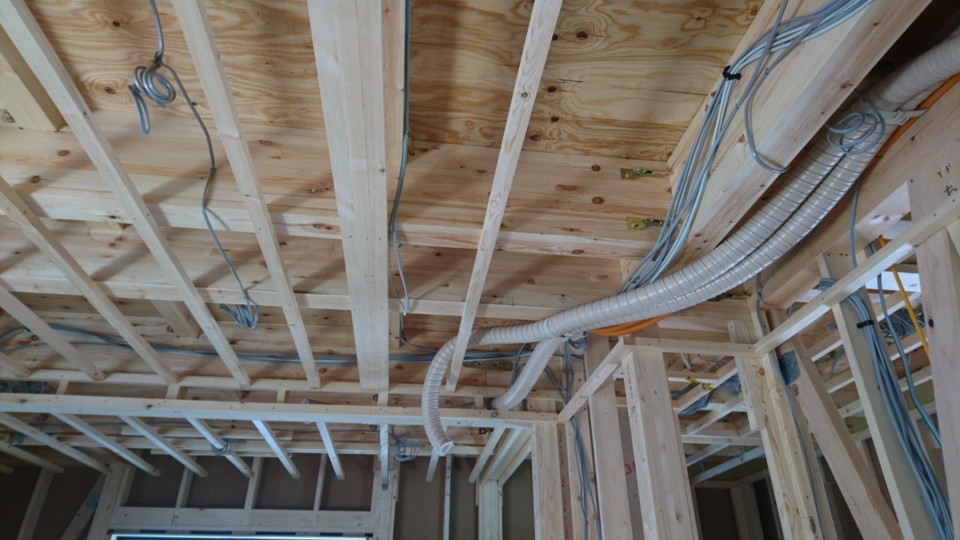 今回は換気システムの設置もありますのでダクト配管もありました。