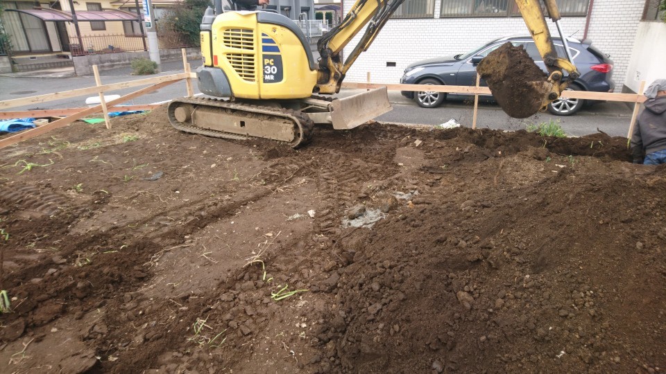 遣り方の情報や基礎図面をもとに地面を掘り進めて行く工程です。