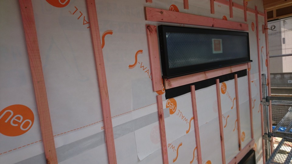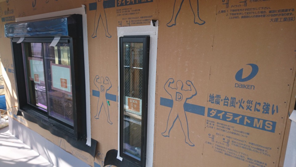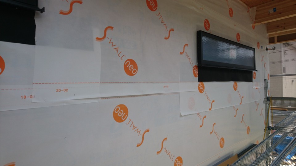 透湿シート完了後、第三者による外装下地検査を受け適合になりましたので、胴縁施工に移りました。