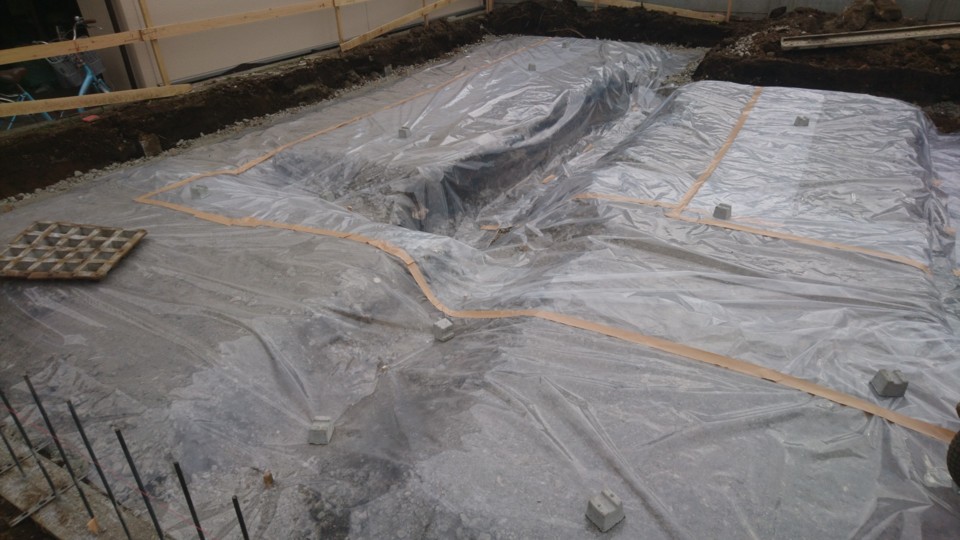 問題なく合格しましたので耐圧コンクリートを打つ作業に移ります。