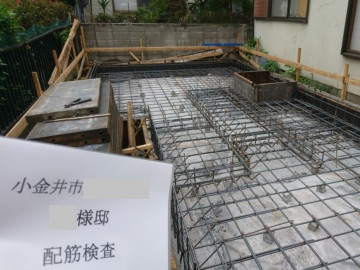 本日は第三者機関による、基礎コンクリートの打ち込み前に、正しく鉄筋が配置されているかのチェックを受けました。建物の耐久性や強度に直接影響する、重要な検査のひとつです。