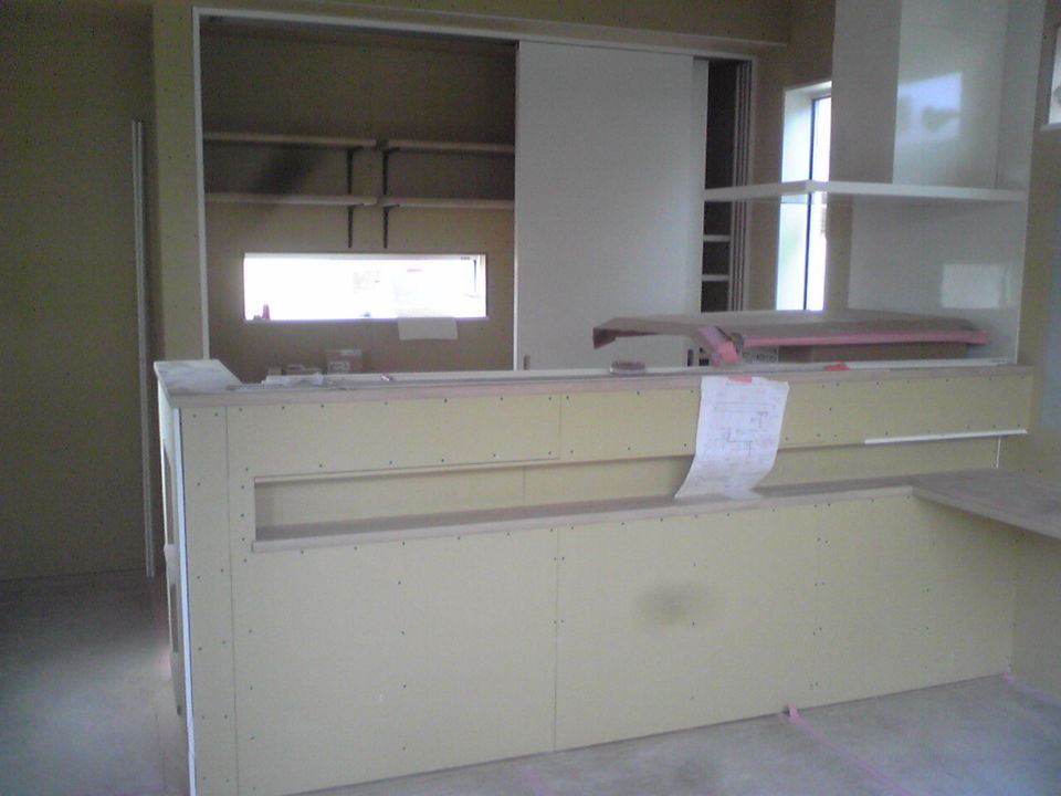 木工事が完了しますと、電気のコンセント関係ボート開口に入りクロス工事へと工程が進みます。
