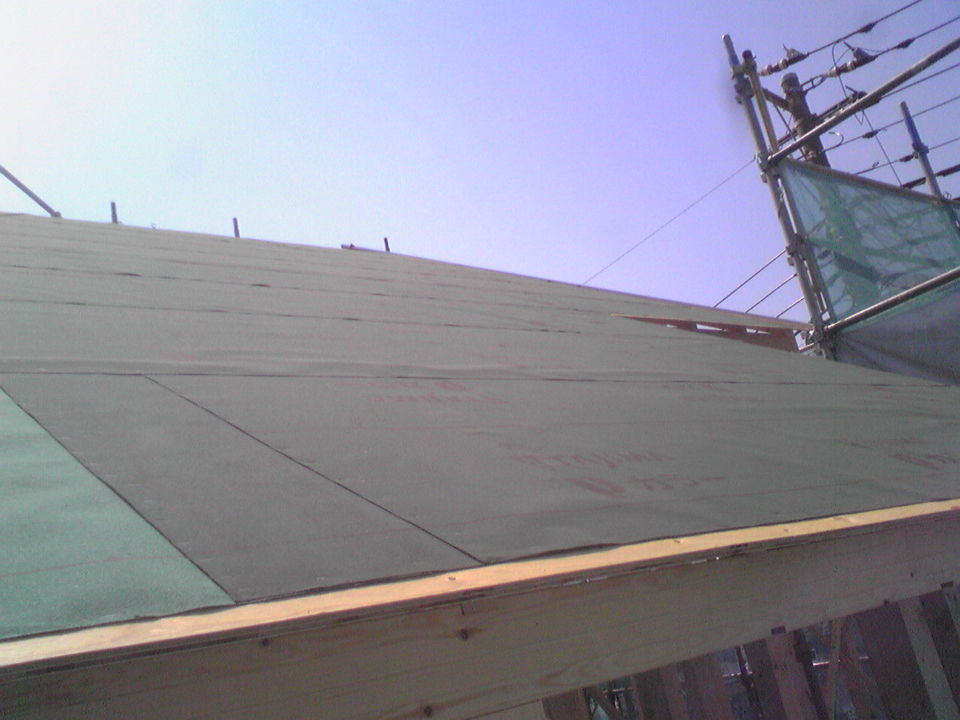 ルーフィングとは屋根の下地材(構造用ベニヤ)を施工した上に張り広げる防水シートのようなものです。