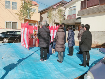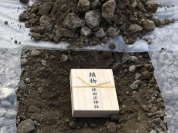 土地の神様をしずめ、工事の安全とご家族みなさまの平安をお祈りするものです。