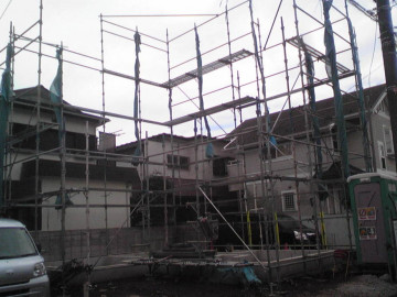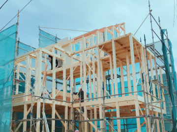 まもなくの上棟に先行して足場の施工が完了いたしました。