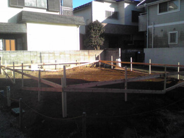 やり方作業とは、工事着手の前に、建物の正確な位置・高さ・水平などを決める作業のことです。