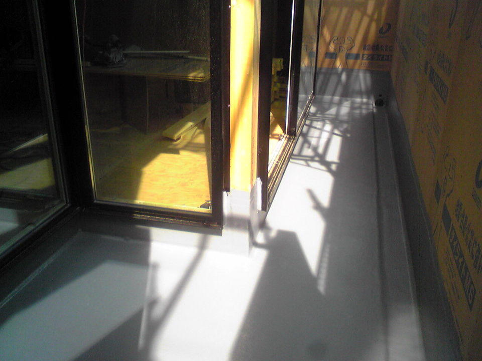 バルコニーの下地が完了し、仕上げの防水工事を行いました。