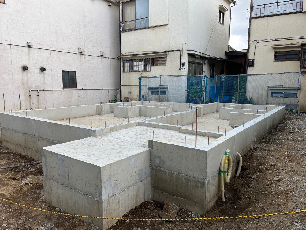 立上りコンクリート後はコンクリートが固まるまで養生期間を設けます。