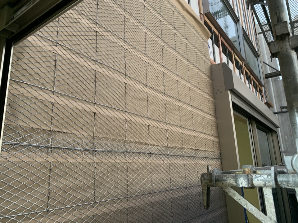 防水検査を合格しましたので、ラス工事中です。