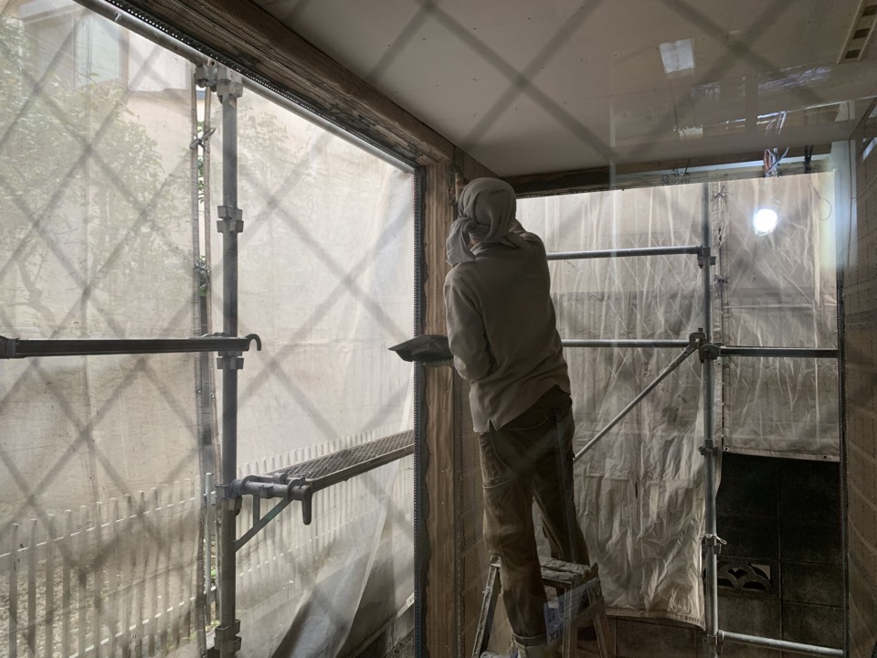 ジョリパットの下地となる左官工事が始まりました。