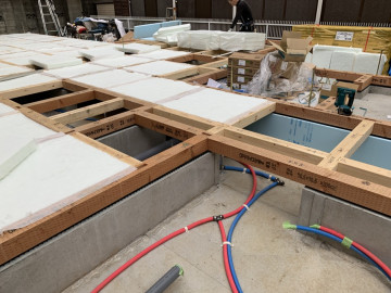 上棟前の土台敷き、先行配管を行っています。