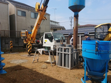 基礎工事に着手する前に地盤改良工事をおこないました。