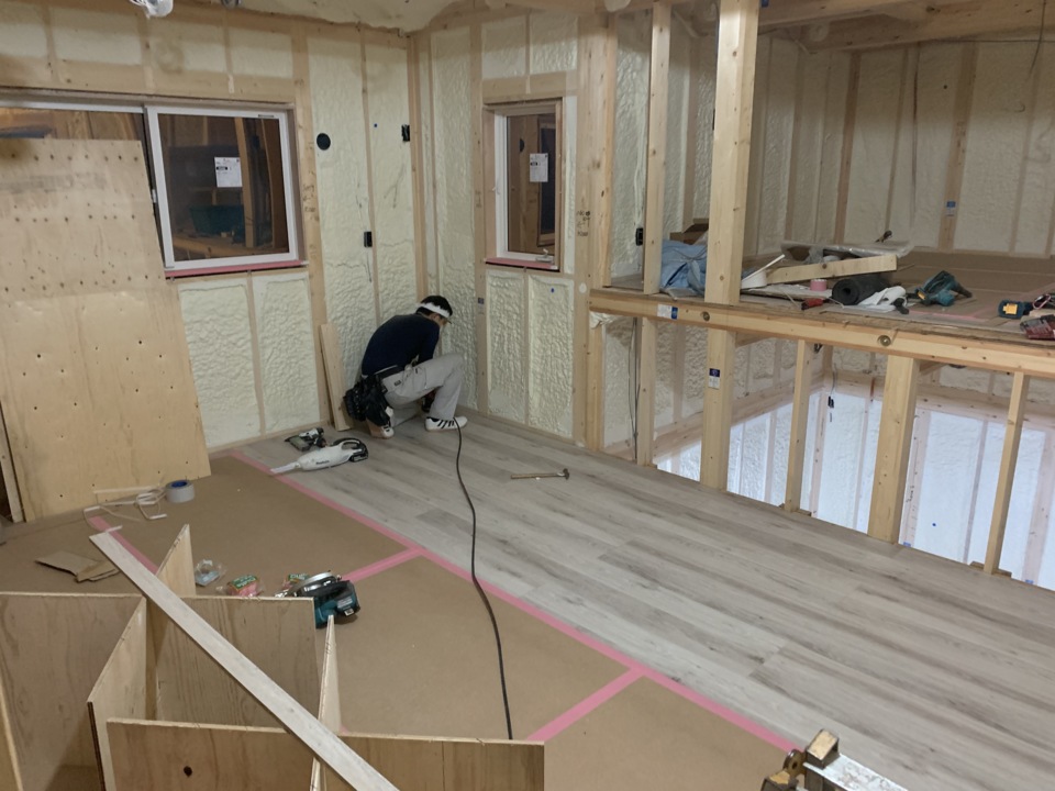 床貼りスタートです。