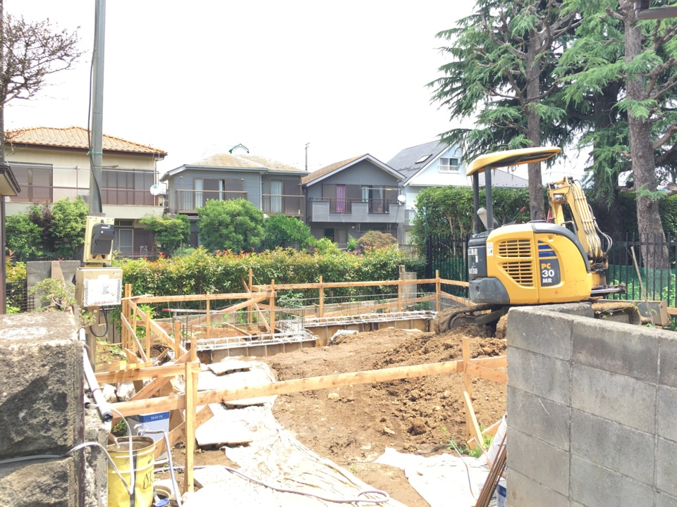 メインの基礎工事の前に深基礎部分の施工を進めており、その部分が完了しましたら通常の基礎工事が開始されます。