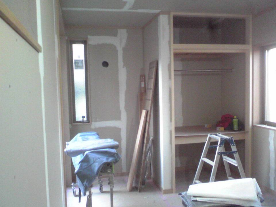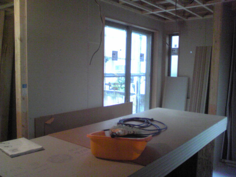 木工事が完了しますと、電気のコンセント関係ボート開口に入りクロス工事へと工程が進みます。