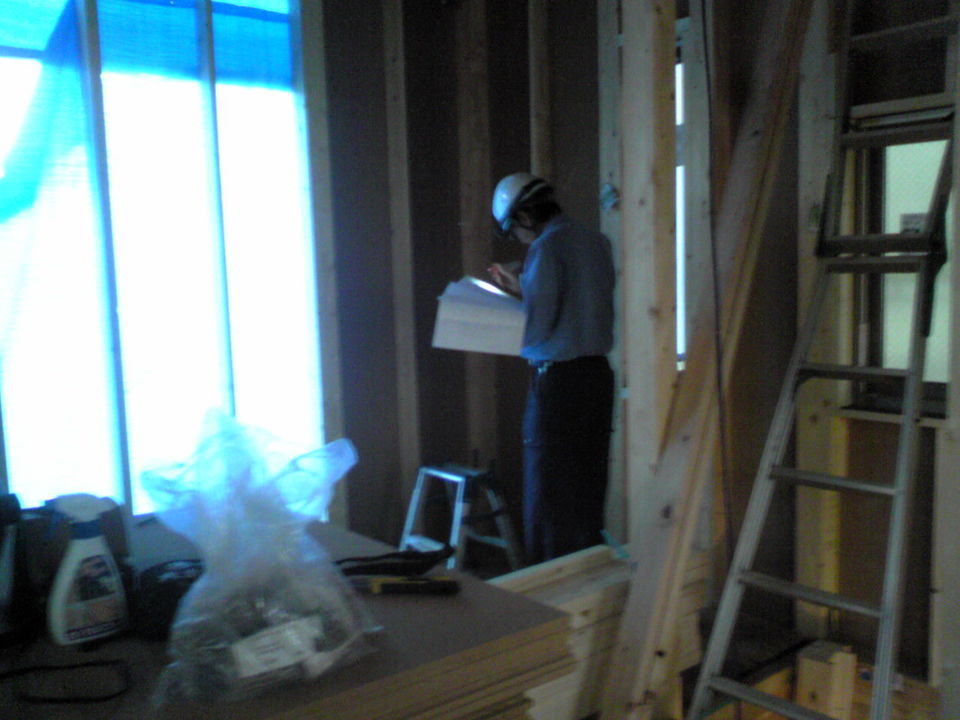 本日は建物の躯体や断熱材に問題がないか、第三者機関によるチェックを行いました。この検査に合格しなければ、次の工程へ進むことができない大切な工程のひとつです。