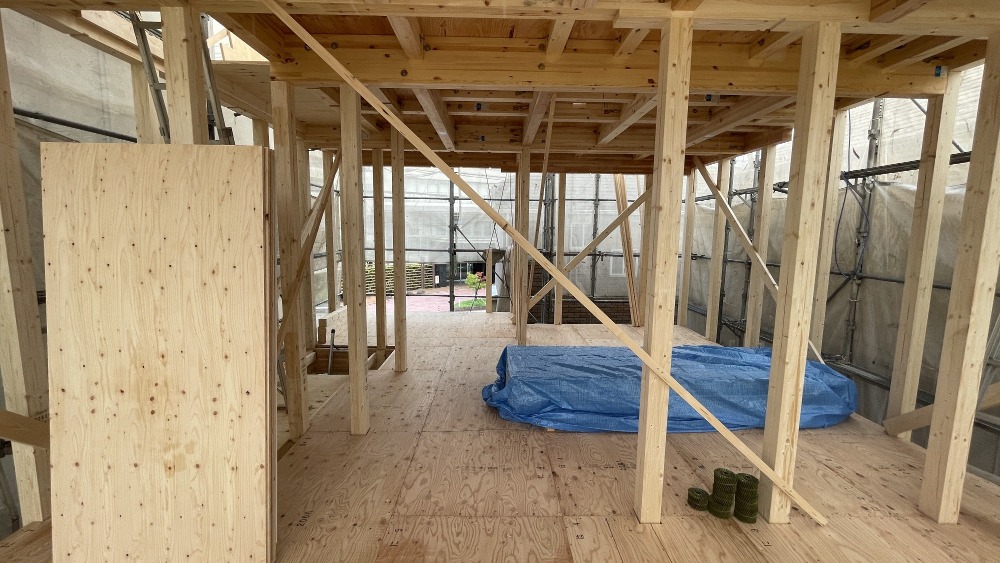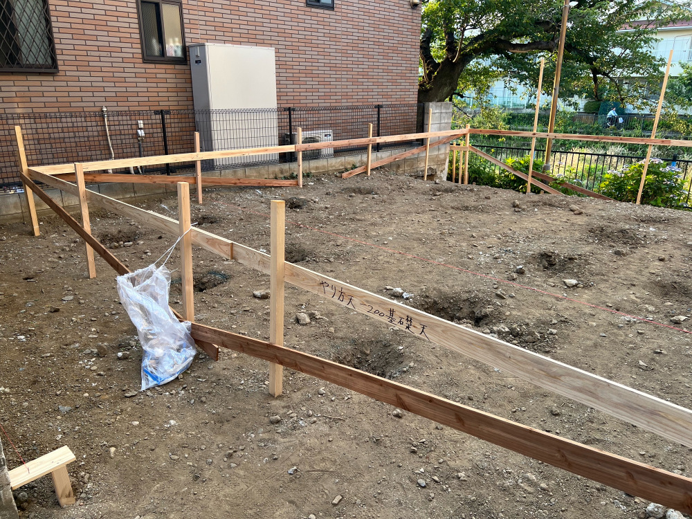 遣り方とは、敷地に対する基礎の配置や、基礎の高さ・直角・幅などの情報を基礎屋さんに分かりやすくするための囲いのようなものです。