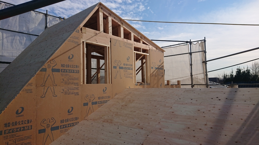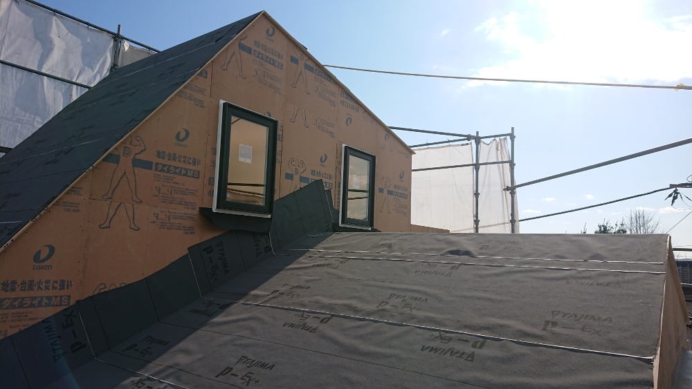 上棟後は屋根下地材の施工を行います。