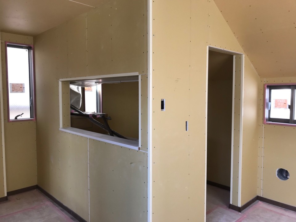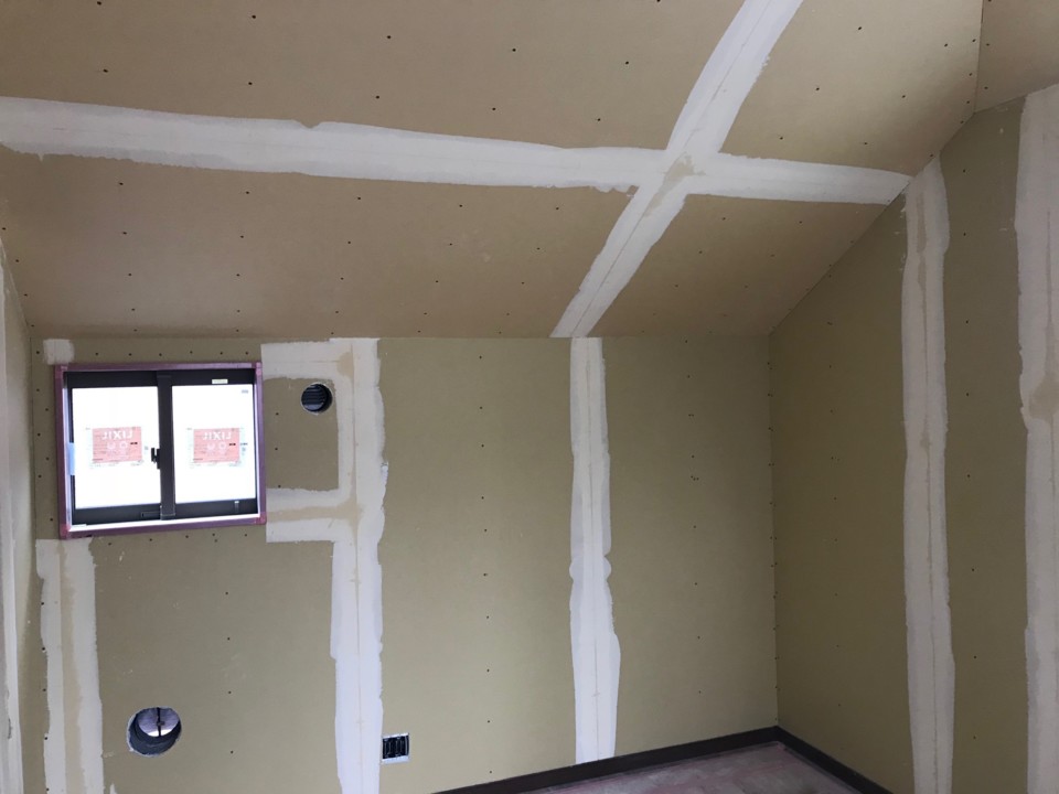 壁紙を貼る前に下地処理をまずします。石膏ボードの継ぎ目の部分にパテを埋めてペーパーをかけ段差が出来ないように平らにしておきます。