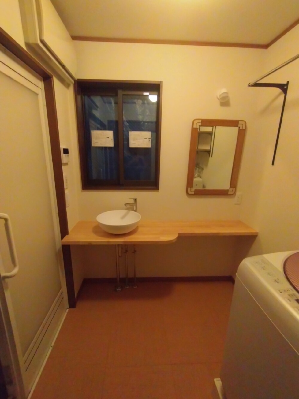 脱衣所をより広く使えるようにとの事で、洗面台を撤去し造作の洗面台を新設します。