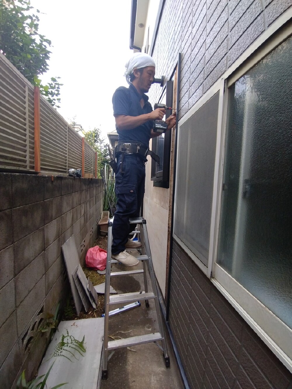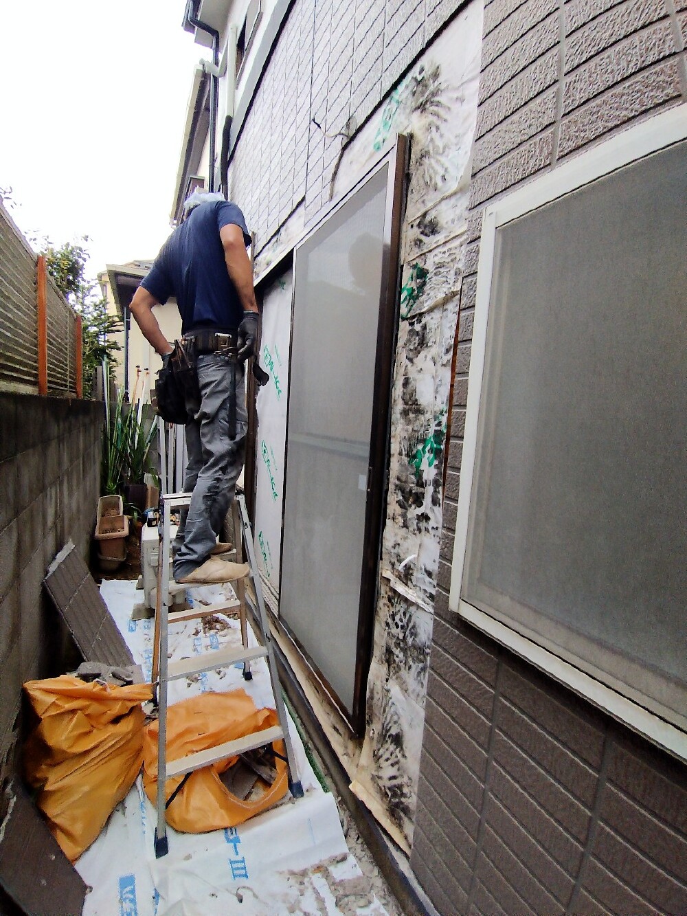 脱衣所の勝手口も窓に変更するため、外壁の解体も同時に行います。