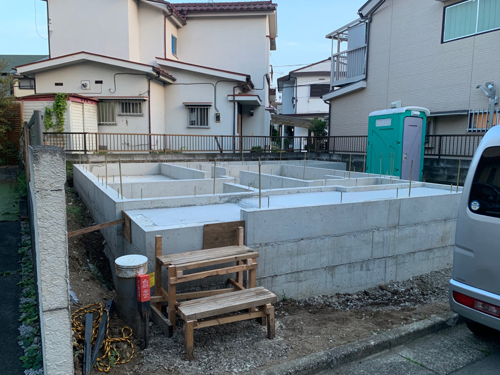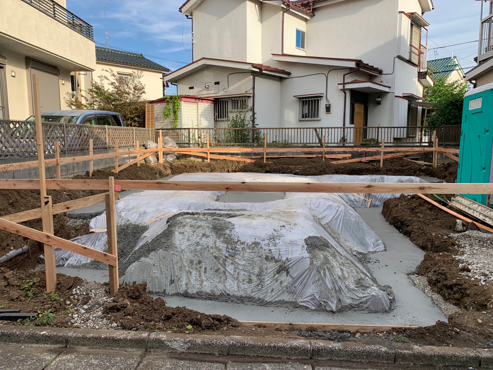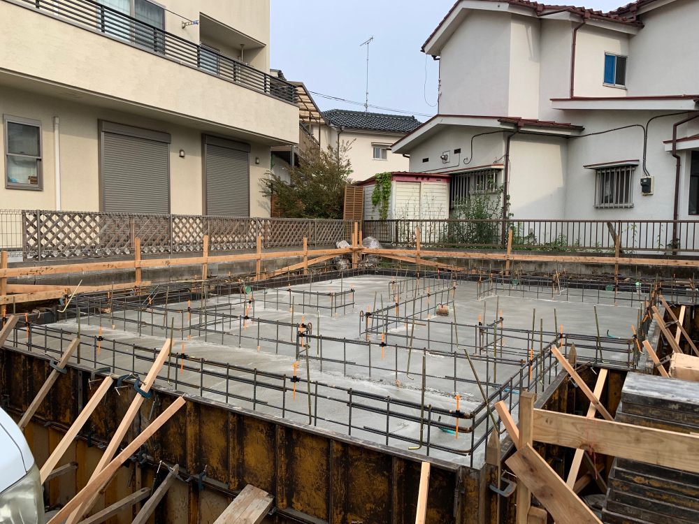 基礎工事が完了しました。先行で給排水工事を行い、まもなく上棟となります。