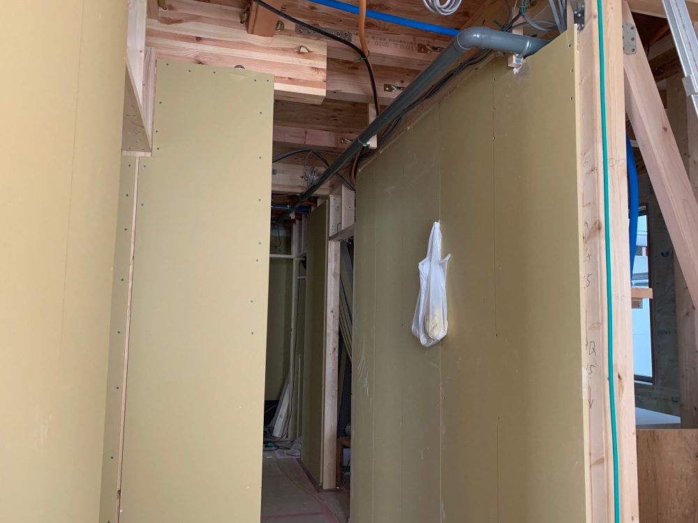 石膏ボードの施工中です。